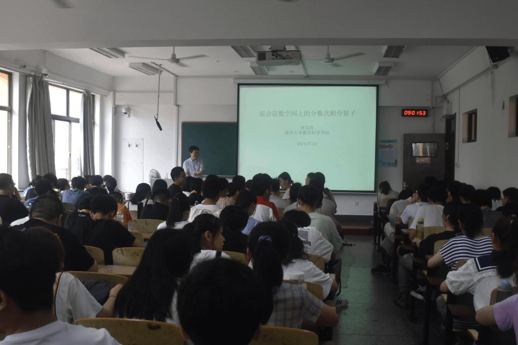 7月12日上午,數(shù)學(xué)與統(tǒng)計(jì)學(xué)院夏季學(xué)期第一場(chǎng)高端學(xué)術(shù)報(bào)告在博遠(yuǎn)樓202教室舉行,來(lái)自南開(kāi)大學(xué)的國(guó)家自然科學(xué)杰出青年基金獲得者孫文昌教授為學(xué)院師生作了題為“混合范數(shù)空間上的分?jǐn)?shù)次積分算子”的學(xué)術(shù)報(bào)告,介紹了混合Lebesgue空間的發(fā)展歷程和研究現(xiàn)狀,以及若干最新的研究進(jìn)展。數(shù)學(xué)與統(tǒng)計(jì)學(xué)院100余名本科生、30余名研究生以及部分教師參加了本次報(bào)告,報(bào)告現(xiàn)場(chǎng)氣氛熱烈,報(bào)告內(nèi)容引起了在場(chǎng)師生的極大興趣。