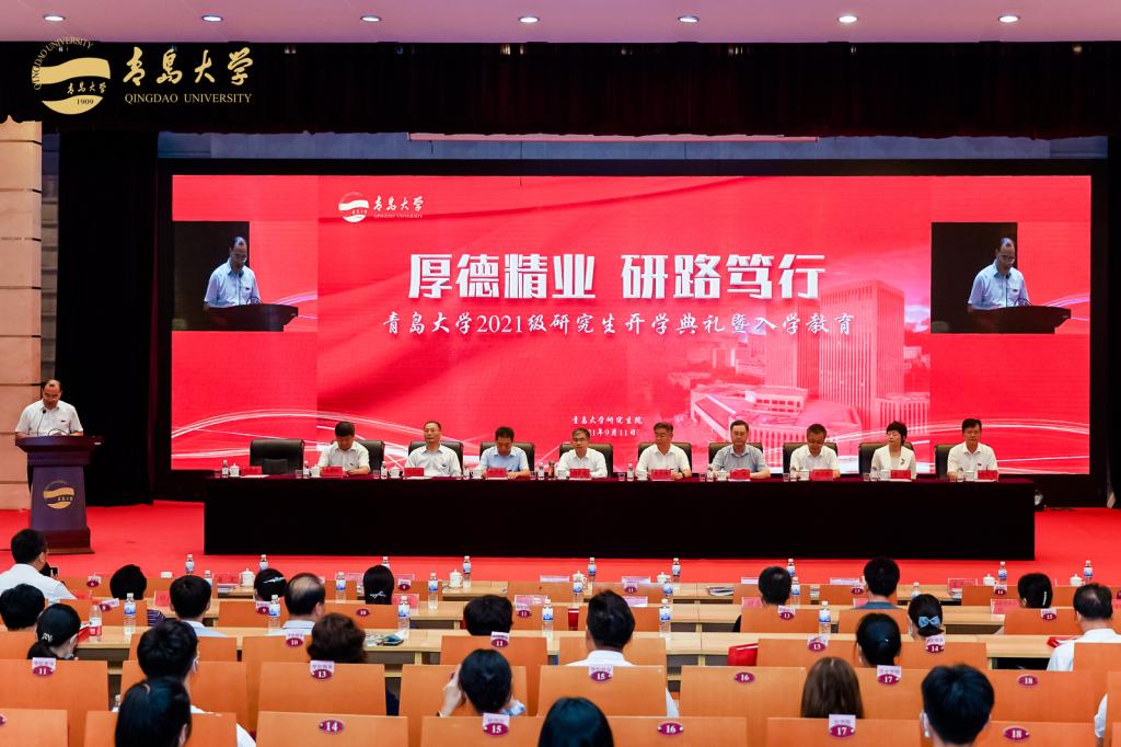 典禮上,夏東偉對各位研究生同學來到青島大學繼續深造,表示熱烈的歡迎和衷心的祝賀。他介紹了青島大學的師資隊伍和高層次人才現狀,以及學校高水平學科建設和學校事業發展情況;分享了習近平總書記在中國共產黨成立100周年大會上的講話精神;特別表揚了在抗擊新冠肺炎疫情作出突出貢獻以及在本科階段就取得優秀創新成果的研究生新同學。他指出,研究生是國民教育序列的最高層次,今天的研究生代表著國家明天的核心競爭力。