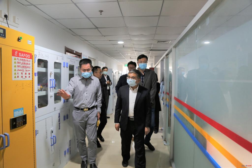 胡金焱一行重點(diǎn)檢查了醫(yī)學(xué)部藥學(xué)院的藥化實(shí)驗(yàn)室、生藥與天然藥化實(shí)驗(yàn)室,物理科學(xué)學(xué)院的博觀樓科研實(shí)驗(yàn)室,生物多糖纖維成形與生態(tài)紡織國家重點(diǎn)實(shí)驗(yàn)室,以及生物醫(yī)用材料與工程研究院、高性能固體電解質(zhì)與固態(tài)鋰電池工程研究中心、能源與環(huán)境材料研究院、非織造材料與產(chǎn)業(yè)用紡織品創(chuàng)新研究院、電動(dòng)汽車智能化動(dòng)力集成技術(shù)國家地方聯(lián)合工程技術(shù)中心等科研機(jī)構(gòu)的實(shí)驗(yàn)室。