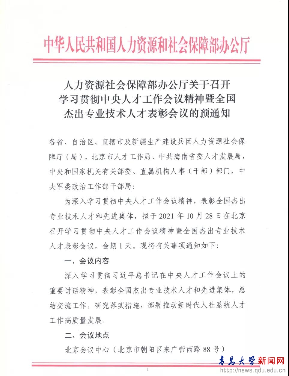 新聞網訊 10月28日,中共中央組織部、中共中央宣傳部、人力資源社會保障部、科技部召開第六屆全國杰出專業技術人才表彰大會。我校附屬醫院數字醫學臨床診療科研團隊作為山東省受獎代表,線上接受表彰。