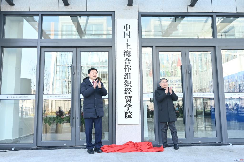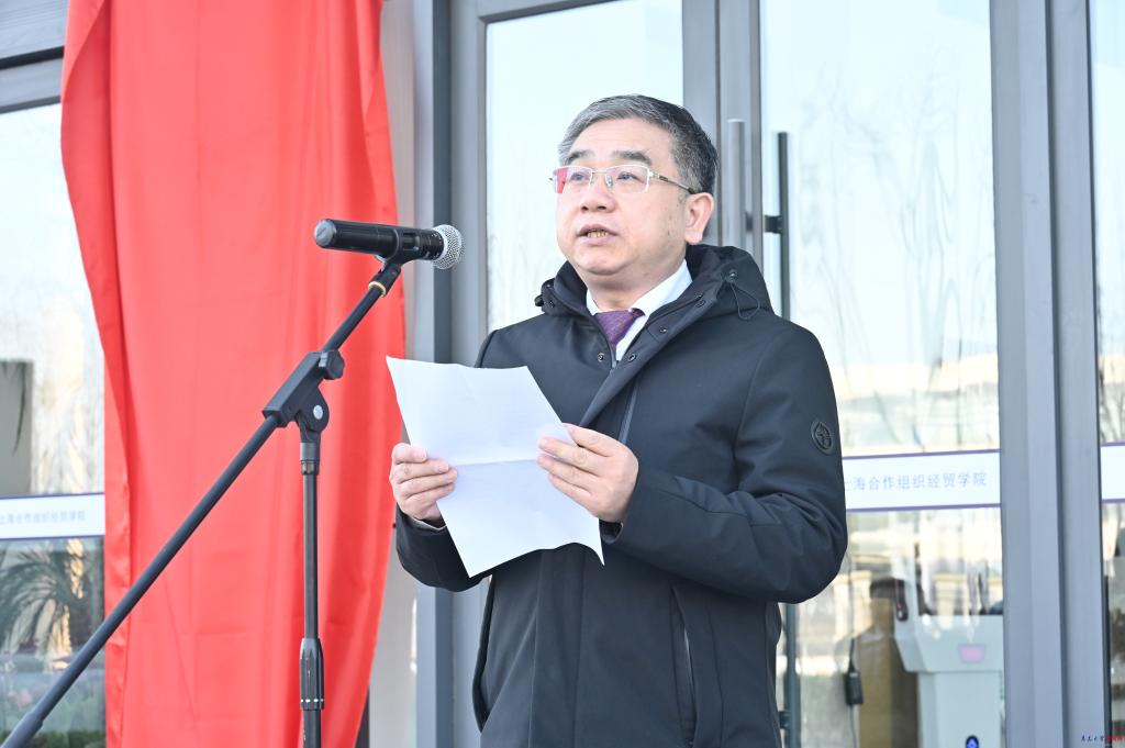 新聞網訊 1月18日上午,中國—上海合作組織經貿學院理事會成立會議暨學院掛牌儀式在中國-上海合作組織經貿示范區隆重舉行。青島市委常委、膠州市委書記、上合示范區黨工委書記、管委會主任劉建軍與校黨委書記胡金焱共同為學院掛牌。校長夏東偉、校黨委副書記杜方波、校黨委常委、副校長肖江南出席活動。