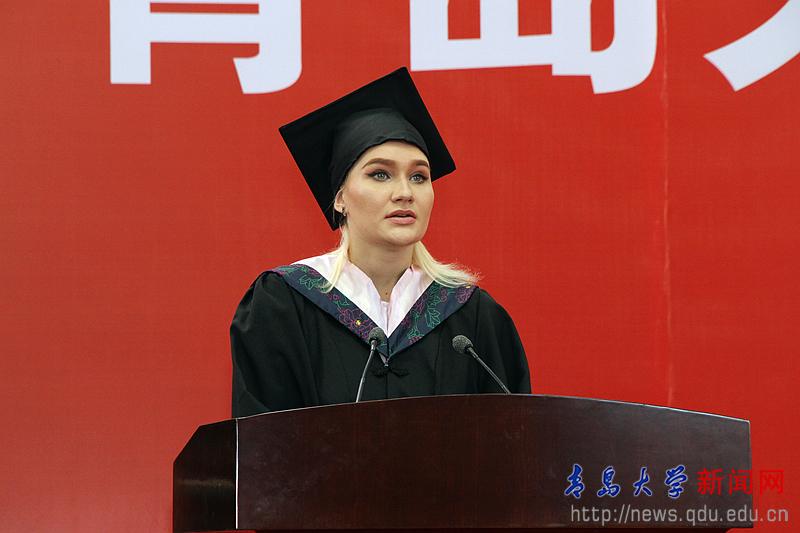 留學生代表、來自俄羅斯的國際教育學院學生文靜雅在發言中表達了對母校的熱愛和不舍,表示將盡己所能為傳播中華文化多做貢獻。