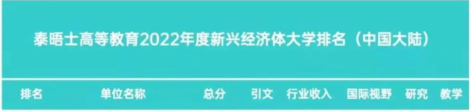 我校首次入榜泰晤士新興經濟體大學排名