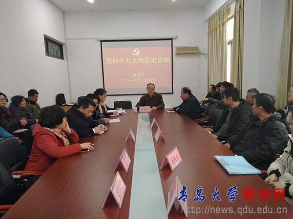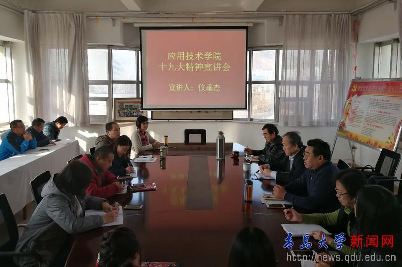 新聞網訊 根據校黨委部署要求,近日學校學習貫徹黨的十九大精神宣講團成員紛紛到各單位開展集中宣講,在全面解讀十九大精神的同時,結合學校工作實際特別是十八大以來改革發展情況,有針對性地開展專題解讀,并與師生員工進行座談交流,學習宣傳貫徹黨的十九大精神的熱潮在全校蓬勃興起。
