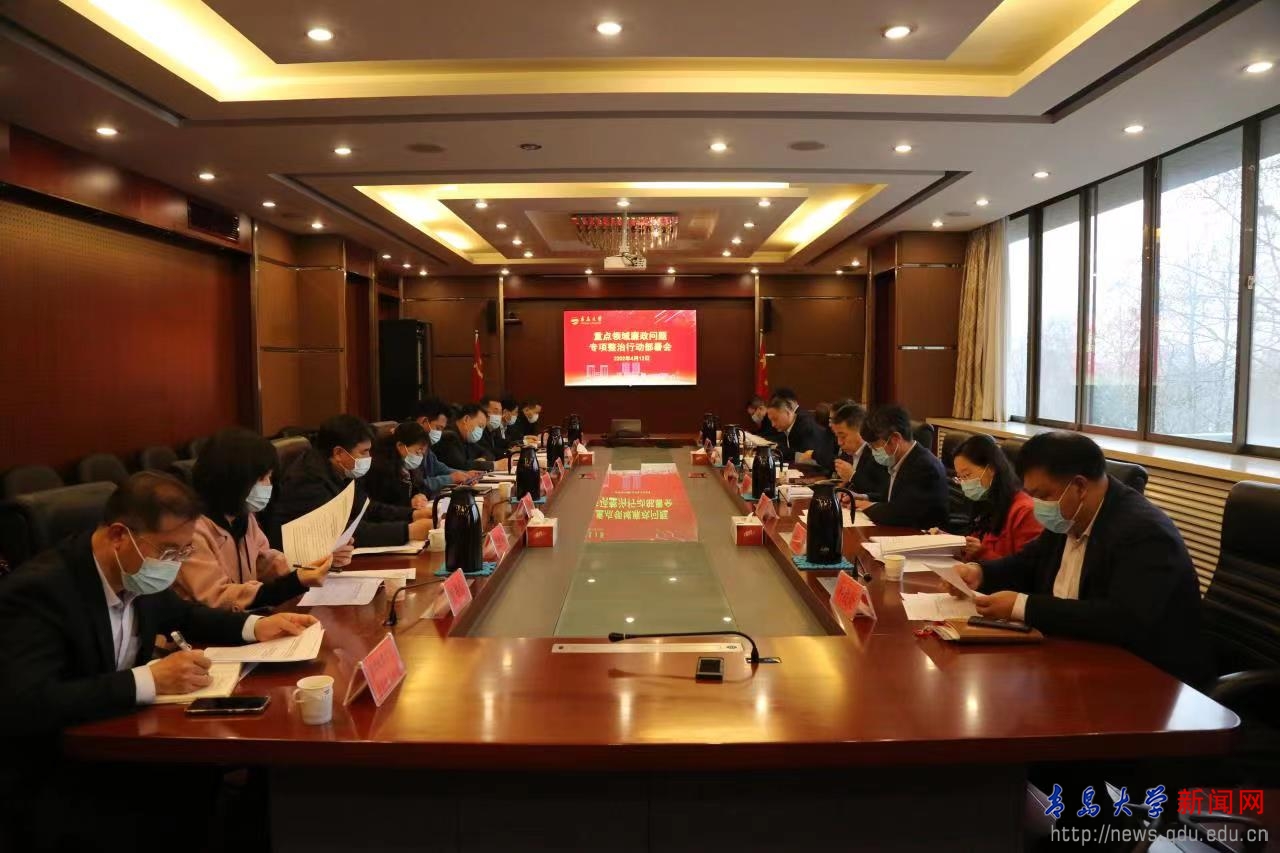 新聞網訊 4月12日上午,校黨委書記胡金焱在行政樓第五會議室召集重點領域廉政問題專項整治行動專題會。校黨委副書記杜方波,校黨委常委、紀委書記、省監委駐青島大學監察專員范玉斌出席會議。