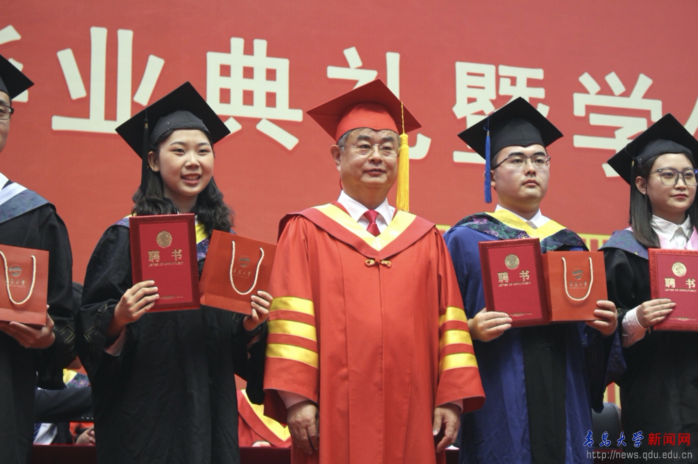 胡金焱、夏東偉為博士學(xué)位獲得者頒發(fā)學(xué)位證書、扶正流蘇,并一一合影留念。校領(lǐng)導(dǎo)、各學(xué)院(部)院(部)長、相關(guān)職能部門負責(zé)人以及知名教授代表為碩士、學(xué)士學(xué)位獲得者頒發(fā)學(xué)位證書、扶正流蘇,并一一合影留念。