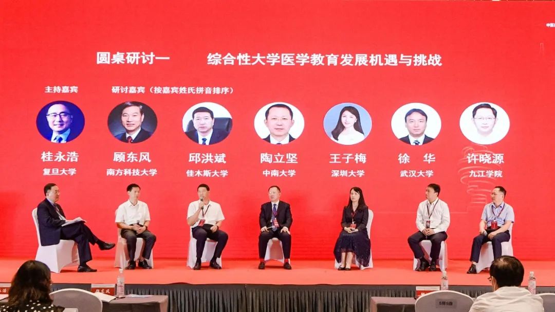 復旦大學原常務副校長桂永浩教授主持召開圓桌研討,南方科技大學代理副校長、中國科學院院士顧東風,佳木斯大學黨委書記邱洪斌,中南大學原黨委常務副書記陶立堅,深圳大學醫學部副主任王子梅,武漢大學醫學部常務副部長徐華,九江學院醫學院書記許曉源六位嘉賓分別圍繞綜合性大學醫學教育管理實踐問題進行了交流探討。