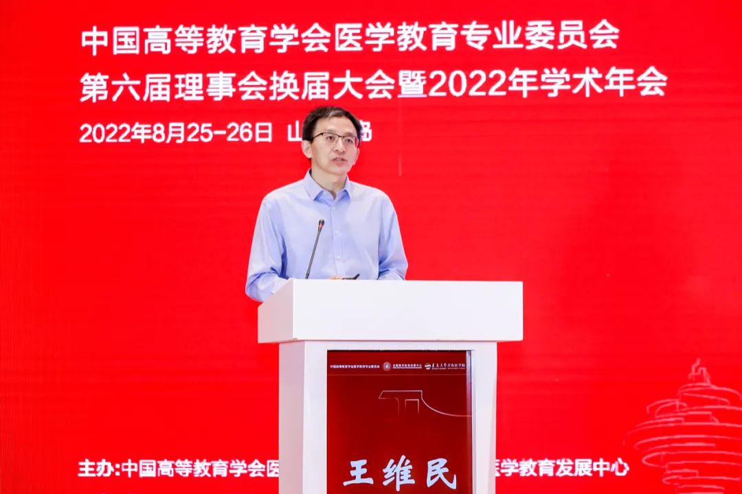 26日上午的主論壇上,王維民以《以發展的角度看醫學教育的熱點問題》為題作報告,結合歷史回顧及時代趨勢,就當下基礎醫學師資問題、整合課程、新醫科、醫學+X、醫學教育研究五大醫學教育熱點問題進行了深度剖析,強調醫學要打開邊界、拓展思路,不斷接納其他學科的新發展和新技術。