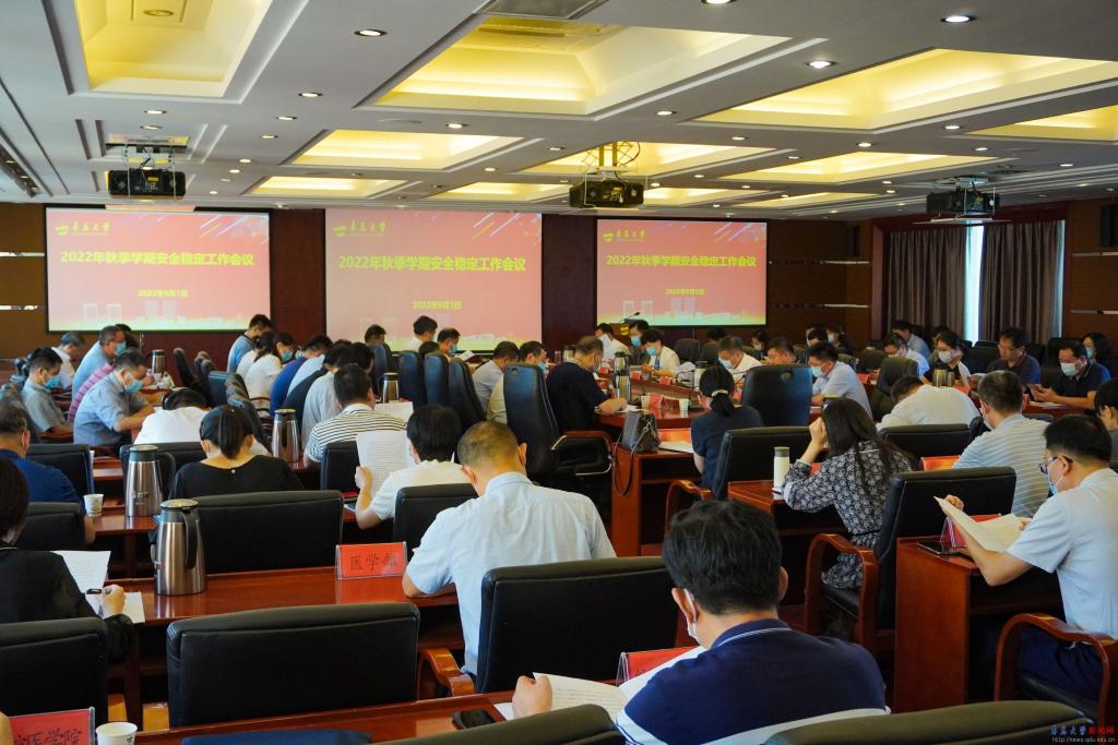 夏東偉對校園安全穩定工作進行了部署。他指出,做好校園安全穩定工作,關鍵在于抓好責任落實,堅持黨政同責、一崗雙責、齊抓共管、失職追責,堅決守住學校安全穩定的“一排底線”。夏東偉強調,要嚴格做好常態化校園疫情防控,制定具體管用的措施,強化服務保障,合理有序地落實好新生入學期間的各項防疫要求。要緊跟進省市疫情防控的最新要求,扎實做好校園核酸檢測,落實好常態化疫情防控各項措施。夏東偉同時對學生安全教育管理、實驗室安全管理、消防及校園安全管理、飲食衛生安全、建筑工地安全生產、值班值守和應急管理做出部署并提出了具體要求。