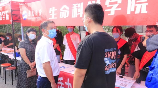 胡金焱逐一走訪師范學院、質量與標準化學院、馬克思主義學院、體育學院、音樂學院和志愿服務等迎新點,并與現場師生親切交流。胡金焱在交流中寄語師范專業新生,其所承擔的教書育人工作是崇高美好的,應擔當時代之大任;寄語標準化專業新生:“標準”是國際話語權,為“中國標準”的制定貢獻自己的力量;勉勵體育專業新生要做文武雙全的時代模范,音樂專業新生要立志為母校留下深厚的文化印記。
