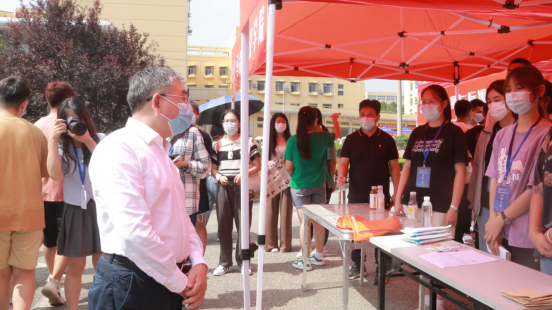“有多少同學來報到了?”“你來自哪里?報到手續辦好了嗎?”“歡迎你,新同學”……每到一處,夏東偉都駐足詢問,詳細了解各學院迎新工作進展、新生報到情況等,并與新生親切交談,他還鼓勵大家刻苦學習,打好專業基礎,要盡快融入大學生活,珍惜寶貴的學習機會,在全新的旅程中展現青春風采,不負大學美好時光。