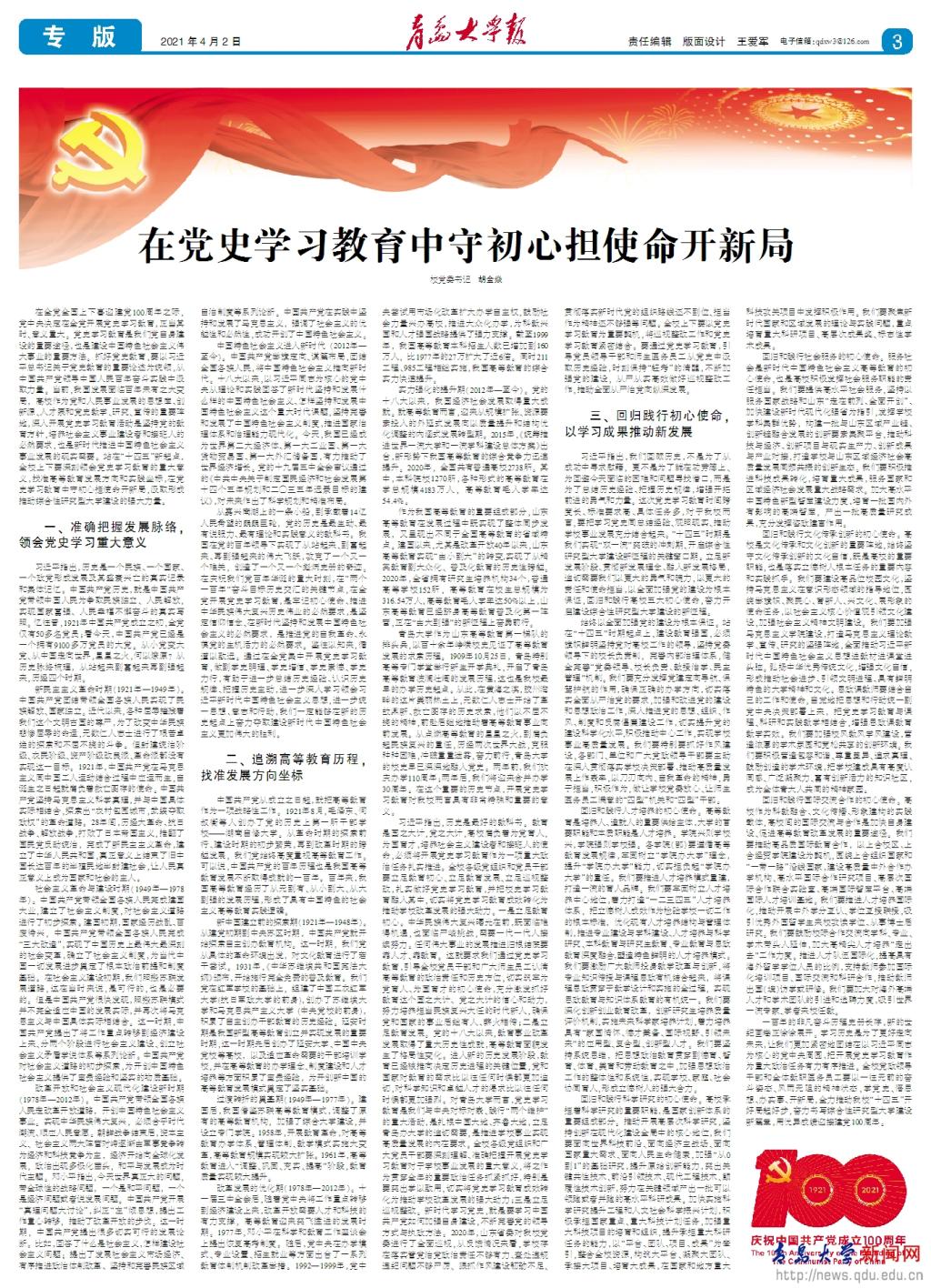 校黨委書記胡金焱在《青島大學報》發表署名文章