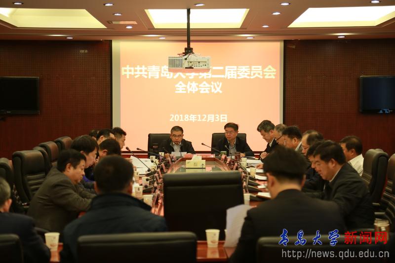 新聞網(wǎng)訊 12月3日上午,中共青島大學(xué)第二屆委員會全體會議在辦公樓第一會議室舉行。第二屆黨委委員19人出席會議,校紀(jì)委委員、學(xué)校第三次黨代會籌備工作領(lǐng)導(dǎo)小組相關(guān)人員列席會議。