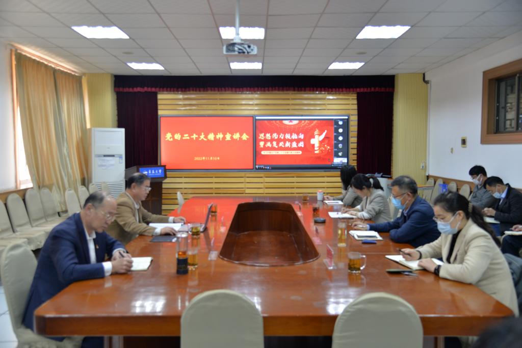 新聞網訊 11月10日下午,校長夏東偉在浮山校區博知樓510會議室為聯系學院320名教職員工作黨的二十大精神宣講報告。報告會采取線上線下相結合的形式。生命科學學院、電氣工程學院、計算機科學技術學院班子成員現場參加宣講會。