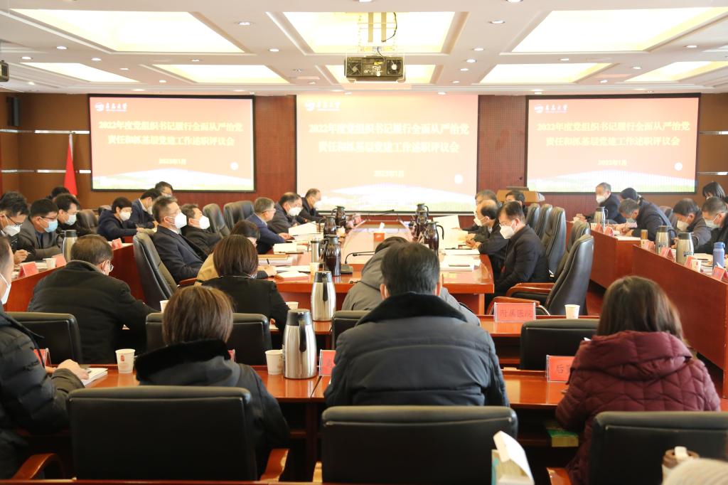 新聞網訊 1月6日上午,學校2022年度基層黨委書記履行全面從嚴治黨責任和抓基層黨建工作述職評議會議在辦公樓407會議室召開。校黨委書記胡金焱主持會議并作點評講話。校領導夏東偉、杜方波、李軍、于永明、范玉斌、劉彩云、肖江南、孔偉金、吳世珍、徐龍飛出席會議。