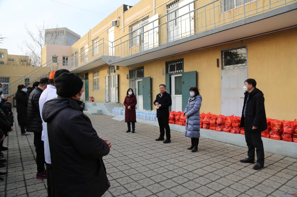 在附屬醫院嶗山院區,校領導一行先后看望慰問了器官移植科、耳鼻喉科、保健科(老年醫學科)、重癥醫學科等科室的醫護人員,向一線醫護人員致以節日問候和新春祝福。校領導詳細詢問了附屬醫院春節期間醫療、護理、后勤保障和安全等方面的情況,囑咐醫護人員在做好患者救治工作的同時,要加強自身防護、保重身體,確保醫護人員及來院患者度過一個平安健康、歡樂祥和的新春佳節。在慰問醫護人員時,校領導一行對附屬醫院主動承擔疫情防控急難險重任務的精神給予高度贊揚,對廣大醫護人員帶病堅守崗位、高燒不下火線的擔當奉獻精神,給予了充分肯定,勉勵他們繼續恪盡職守,全力以赴,為人民健康保駕護航。