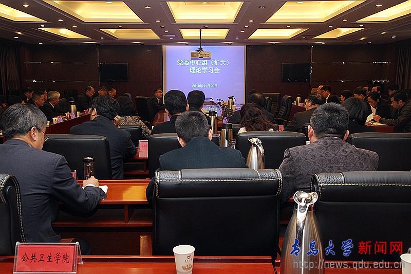 新聞網訊 11月29日,校黨委中心組(擴大)在辦公樓第一會議室舉行理論學習會。校黨委書記胡金焱主持學習并講話。校領導杜方波、李軍、于永明參加學習。