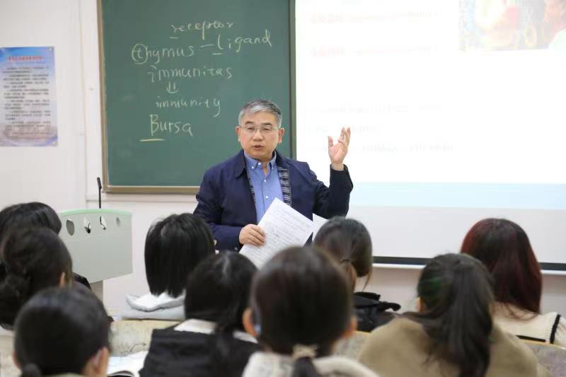 在博遠樓304教室,校黨委書記胡金焱和醫學部的同學們一起聽取了張麗老師講授的《醫學免疫學》一課。課后與師生交流時,胡金焱首先對此次課堂教學表示了充分肯定,認為張老師準備充分,課堂講授邏輯清晰、富有感染力。胡金焱表示,要對傳統教學模式進行變革性重塑,實施“課堂革命”,打造“金課”。通過師生互動、探討式教學、小組研討、翻轉課堂、過程化考核等措施,讓教與學互動起來,讓教師變成導演,讓學生成為演員。要打造與時俱進,不斷更新迭代的課程體系,豐富課程線上線下教學資源、線下教育與線上教育結合起來,課堂講授與學生自學結合起來,讓學生動起來、課堂活起來、課程立起來。胡金焱還勉勵同學們在新學期要珍惜時光、認真學習、奮發圖強。