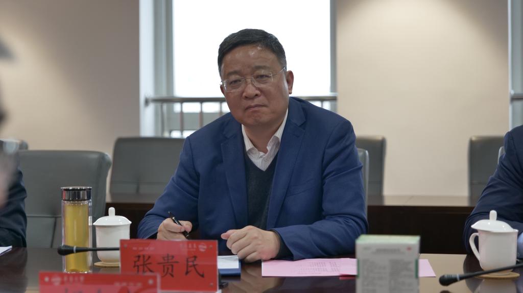 胡金焱對張貴民一行表示熱烈歡迎。他表示,魯南制藥集團是國內知名醫藥企業,魯南精神和企業文化更是沂蒙精神的典型代表。隨后,他介紹了學校醫學學科的辦學理念和發展情況,并強調產教融合、科教融合是學科發展的重要支撐,而強大的醫科支撐則是醫療發展的“源頭活水”。近年來學校通過實施醫教研一體化,以辦學思維辦醫、以教學科研帶臨床、以高水平學科建設帶高水平醫院建設,不斷深化醫學教育體制機制改革,醫學辦學水平和附屬醫院綜合實力不斷提升。他強調,要深入貫徹習近平總書記關于中醫藥工作的重要論述,緊抓中醫藥發展大勢機遇。校企雙方資源互補,合作前景廣闊,希望雙方在相關醫藥領域協力共進,探索建立聯合實驗室,深入開展人才交流合作,依托學校學科優勢有力聚合校企人才、科研、醫療、資金、產業等創新要素,共筑中醫藥發展生態鏈,共同打造山東醫學醫療高地,助力振興中醫藥發展、服務健康中國。