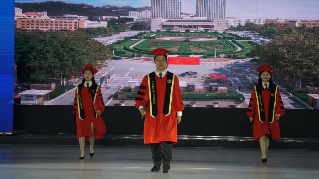 新聞網訊 5月17日,青島大學專屬學位服發布會在體育館舉行。黨委常委、副校長孔偉金出席發布會。