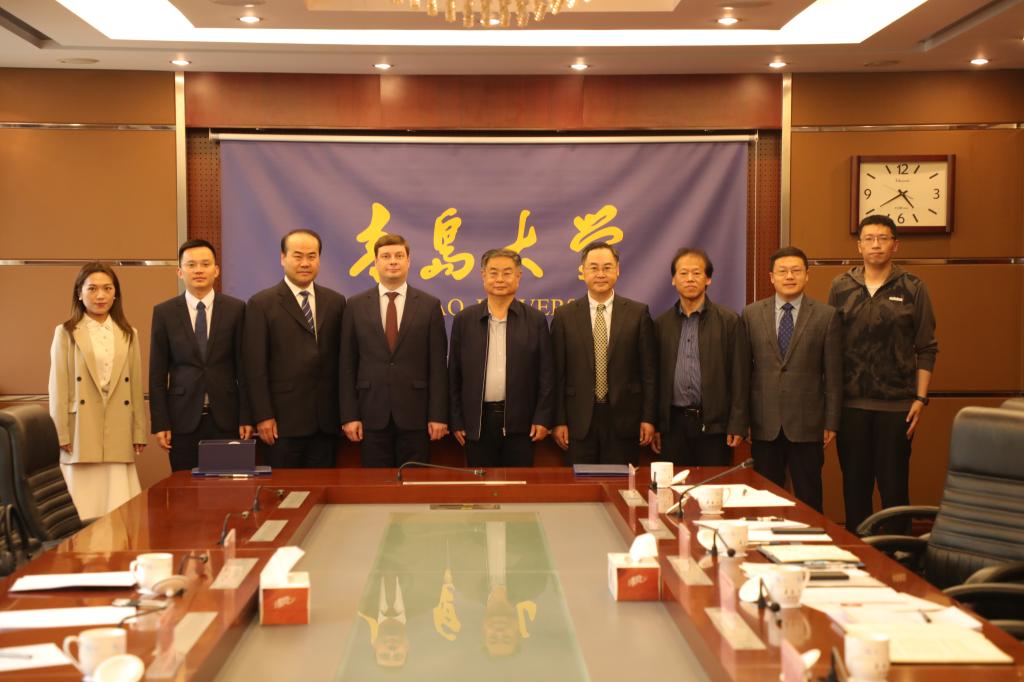 夏東偉對客人來訪表示熱烈歡迎。他簡要介紹了青島大學的基本情況和發展概況。他指出,圣彼得堡國立大學和青島大學兩校合作淵源深厚,合作基礎扎實。作為圣彼得堡國立大學的優秀校友和友好使者,我校數學科學學院院長高紅偉教授發揮了重要作用。2017年,我校數學與統計學院和圣彼得堡國立大學應用數學與控制過程系共同申報的項目入選山東省“外專雙百計劃”項目。2018年,圣彼得堡國立大學一位博士成功入選中國“博士后國際交流計劃”引進項目,進入青島大學系統科學博士后科研流動站。截止到2022年11月,“外專雙百計劃”項目團隊以青島大學為第一署名單位、標注項目資助出版學術專著1部、發表高水平論文合計43篇,含SCI/SSCI收錄論文35篇,其中包括IJGT, EJOR等5篇,中外合作署名發表在SCI/SSCI收錄期刊的論文20篇。2020年,雙方簽署校際合作協議。2021年和2023年,我校還獲批國家留學基金委兩個促進與俄烏白國際合作培養項目,派出赴圣彼得堡國立大學學生43人。夏東偉強調,圣彼得堡國立大學作為一所對人類文明進步作出重大貢獻的大學,我們期待著雙方一道,進一步夯實合作基礎,增進合作共識,推動雙方合作向更深層次、更高水平邁進,為構建人類命運共同體作出積極貢獻。