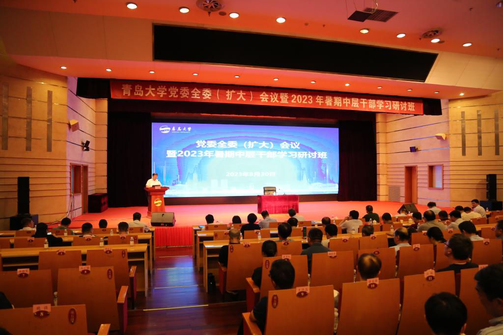 關于2023年下半年的重點工作,夏東偉指出,要以百米沖刺的速度和勁頭,錨定全年目標不動搖,全力以赴完成2023年的工作任務。一是堅持立德樹人,全面推進五育并舉,加快提升人才培養質量。著力推進拔尖創新人才培養,全面提升人才培養質量,不斷提高學生就業水平和就業質量,抓好學生體質健康水平的提升,提高勞動教育、美育的有效性、針對性,抓好研究生教育,以切實舉措著力提升人才培養質量。二是加快實施學科集群和學科交叉發展戰略,推動學科建設水平整體提升。做好省“811”計劃申報,啟動新一輪學位授權審核籌備工作。進一步完善學科集群運行機制,集合優勢資源,實現國家級重大科研立項、成果獎勵、平臺(基地)建設等的新突破。三是推進有組織的科研,進一步提升科技創新能力。圍繞國家重大戰略需求整合科研資源和團隊,提升承擔大項目的能力,組織好國家重大重點項目和各項基金的申報。四是抓好人才隊伍建設,提升師資隊伍整體水平。加大高層次人才精準引育力度,開展好職稱評聘、人才考核、進一步完善薪酬分配方案,開展好教師節表彰活動,搭建好人才成長發展的基礎平臺、成長平臺、激勵平臺。五是加大國際開放辦學力度,推進國際化辦學水平提升。主動走出去,拓展國際化交流的對象和項目,積極推進教師訪學進修,提升學校的國際化辦學水平。六是全面融入服務區域經濟發展,積極爭取和拓展發展資源。主動融入國家和區域重大戰略,落實服務山東、服務青島高質量發展行動計劃,推進產教融合、科教融匯,積極爭取社會資源支持,增強發展活力。七是深化教育綜合改革,進一步提升治理能力和治理水平。繼續深化以“學院辦大學”為核心的管理改革,充分激發學院辦學動力活力。八是切實抓好安全穩定工作,守牢發展安全底線。開展全校安全檢查,進一步強化學校安全穩定的各項措施,守牢校園安全、意識形態、輿情安全、保密安全、學生安全、實驗室安全、食品安全、考試安全等一排安全底線。