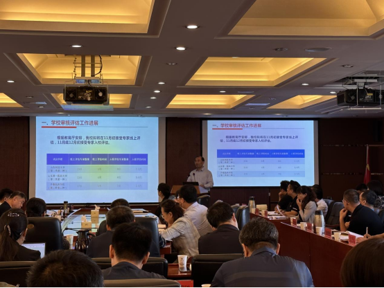 夏東偉就扎實做好自評自建各項工作、高質量完成評估任務提出三點要求,一是要提高思想認識,高度重視本輪本科教育教學審核評估。要堅持黨的全面領導,把立德樹人成效作為檢驗學校一切工作根本標準,落實“以本為本”“四個回歸”,強化本科人才培養和本科教育核心地位。二是要把握評估精髓,以評促建提高本科人才培養質量。堅持立德樹人,深化“一二三四五”協同育人綜合改革,培養德智體美勞全面發展的社會主義合格建設者和接班人;堅持推進改革,貫徹OBE教育理念,實施“四個融合”,培養具有“家國情懷、德才兼備”的創新型應用型復合型人才;堅持問題導向,持續改進本科人才培養過程中存在的短板。三是各職能部門、教學單位密切配合,協調一致做好迎評各項工作。要本著對學校事業發展高度負責的態度,統一思想,增強信心,齊心協作,以積極的姿態、良好的狀態迎接新一輪評估,為學校教育教學質量再上新臺階、為建設高水平研究型大學做出更大貢獻。
