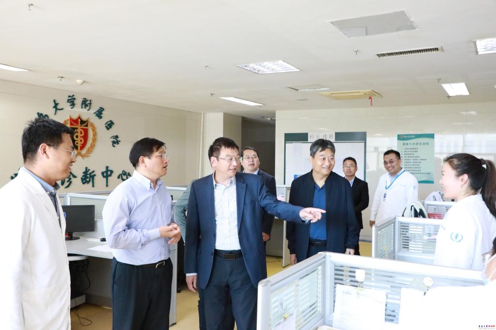 魏志強(qiáng)還調(diào)研考察了學(xué)校附屬醫(yī)院,在聽取附屬醫(yī)院黨委書記蔣光峰關(guān)于附屬醫(yī)院發(fā)展情況匯報(bào)后,他指出,附屬醫(yī)院確實(shí)與想象中的一樣,繼承發(fā)揚(yáng)了青醫(yī)的優(yōu)良傳統(tǒng)、聲譽(yù)和風(fēng)范,在門診量、手術(shù)量、全國公立醫(yī)院考核等指標(biāo)中,特別在器官移植、達(dá)芬奇機(jī)器人手術(shù)、互聯(lián)網(wǎng)醫(yī)療等方面,形成了自己的優(yōu)勢(shì)和特色,走在全國同類醫(yī)院的前列。廣大醫(yī)護(hù)人員用自己的辛勤付出維護(hù)著青大醫(yī)學(xué)的聲譽(yù),守護(hù)著人民的生命健康,他向?yàn)榍噌t(yī)發(fā)展做出無私貢獻(xiàn)的每一位青醫(yī)人表示衷心的感謝和誠摯的敬意。
