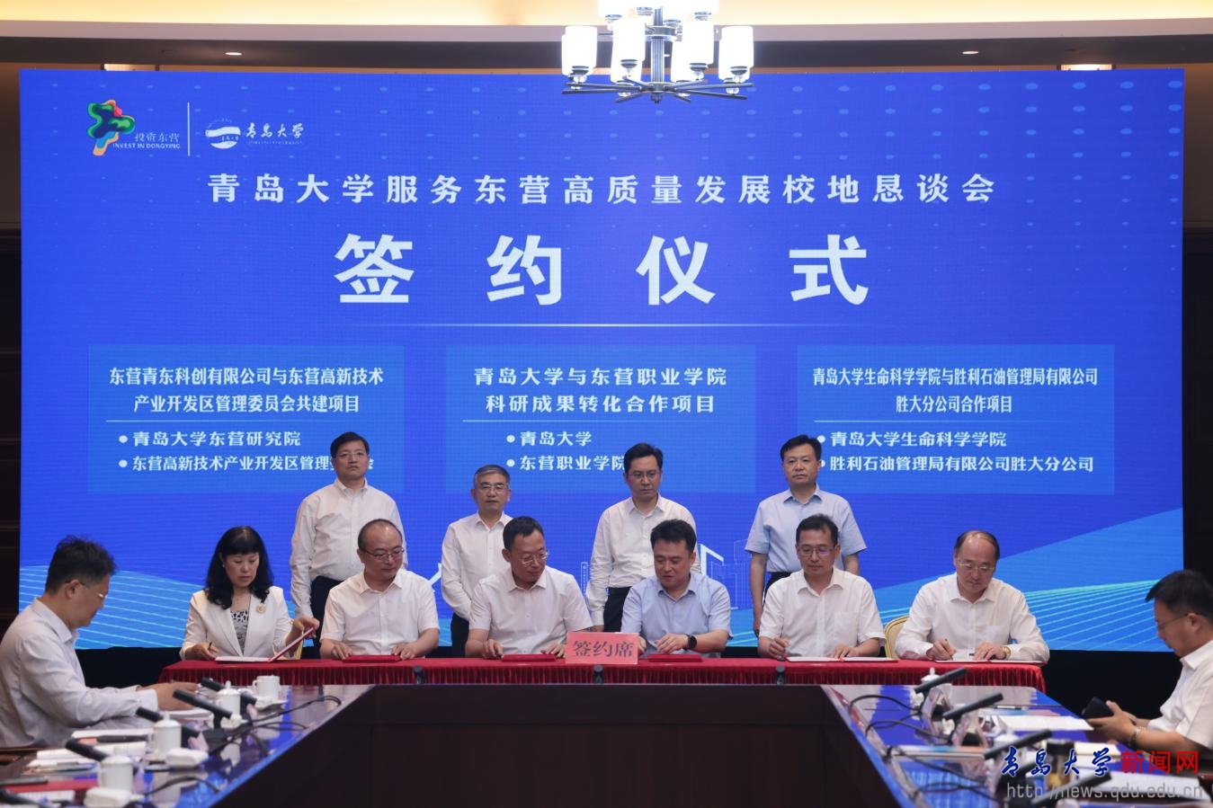 據(jù)悉,2023年2月我校與東營市人民政府簽訂全面戰(zhàn)略合作協(xié)議,雙方在高水平科研創(chuàng)新、特色產(chǎn)業(yè)發(fā)展、健康醫(yī)療合作、文化旅游合作以及人才交流合作等多個(gè)領(lǐng)域展開深度合作。2023年度我校與東營市的合作項(xiàng)目取得了顯著成果,技術(shù)成果轉(zhuǎn)化達(dá)到了42項(xiàng),技術(shù)合同交易額高達(dá)1422萬元。2021年8月,東營校友企業(yè)與母校聯(lián)合共建東營青東科創(chuàng)有限公司,落實(shí)母校與東營市戰(zhàn)略合作,推進(jìn)東營研究院建設(shè)。今年2月,青島大學(xué)東營研究院正式掛牌成立,由青島大學(xué)、山東省黃河三角洲可持續(xù)發(fā)展研究院和東營高新技術(shù)產(chǎn)業(yè)開發(fā)區(qū)管理委員會(huì)三方共建,將進(jìn)一步推動(dòng)我校與東營市的科研合作和人才培養(yǎng)。