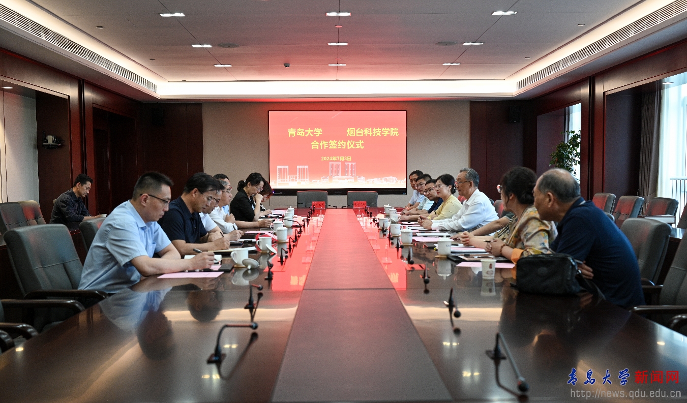 王少鵬對青島大學近年來在人才培養(yǎng)、學科建設和科技成果轉化等方面取得的成績表示高度肯定與贊賞。他詳細介紹了煙臺科技學院的歷史沿革、學科設置和師資隊伍等基本情況。他指出,煙臺科技學院始終堅持務實發(fā)展、創(chuàng)新發(fā)展、特色發(fā)展,致力于培養(yǎng)高素質應用型人才,并努力將學校建設成為特色鮮明的應用型本科高校。他深切表達了加強兩校合作的熱切期盼,期待能夠充分利用青島大學在學科領域的深厚底蘊與人才資源的豐富優(yōu)勢,為煙臺科技學院的發(fā)展注入新的活力,共同為山東半島高等教育的發(fā)展貢獻力量。