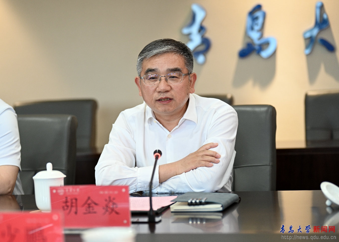 胡金焱首先代表學校對王少鵬一行的到來表示熱烈歡迎。他從歷史久、學科全、規(guī)模大、發(fā)展快、貢獻大等五個維度詳細介紹了學校近年來所取得的成績。他強調(diào),當前學校正處于全力推進“雙一流”建設的關鍵階段,不久前成功召開的中國共產(chǎn)黨青島大學第四次黨員代表大會匯聚了全體青大人的智慧與力量。目前全校師生員工團結一心、共謀發(fā)展,為建設高水平綜合性研究型大學而努力奮斗。煙臺科技學院自2021年5月轉設為本科院校以來,堅持特色興校,在學科建設和人才培養(yǎng)方面取得了長足的進步,贏得了學生、家長及社會各界的高度認可和廣泛贊譽。他希望雙方以本次簽訂合作協(xié)議為契機,在提升人才培養(yǎng)質量和師資隊伍建設等方面共建共享、攜手并進,共譜合作新篇,為促進山東高等教育高質量發(fā)展、服務半島地區(qū)作出更大貢獻。
