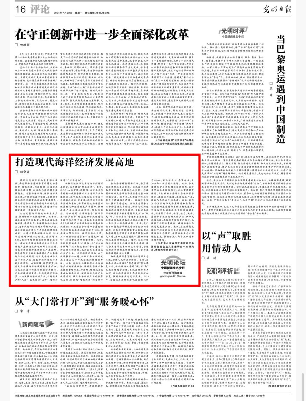 新聞網訊 7月22日,《光明日報》刊登我校黨委書記胡金焱的理論研究文章“打造現代海洋經濟發展高地”。