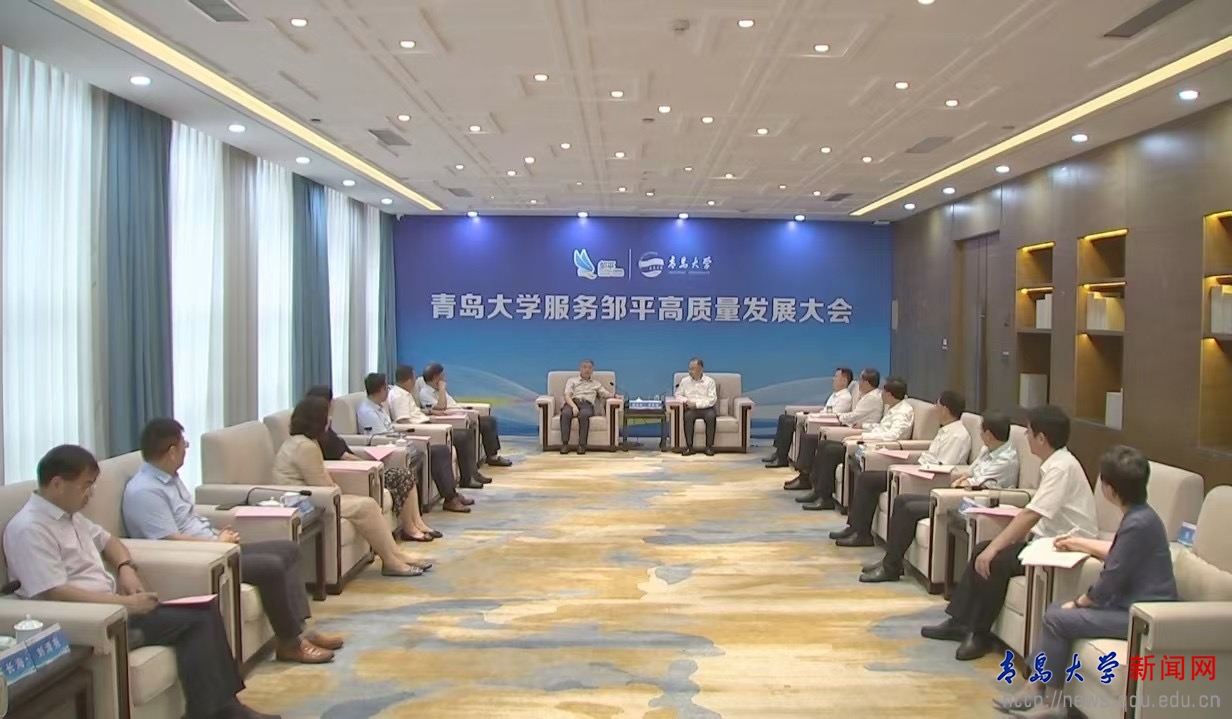 新聞網訊 8月20日,青島大學服務鄒平高質量發展大會在鄒平召開。校黨委書記胡金焱,濱州市委常委、副市長、濱州高新技術產業開發區黨工委書記屈躍寬,濱州市副市長、鄒平市委書記呂明濤出席會議。校領導李榮貴、劉恩賢,鄒平市委常委、市委辦公室主任郝凱軍,鄒平市委常委、副市長陳靜參加會議。會議由鄒平市委副書記劉德軍主持。