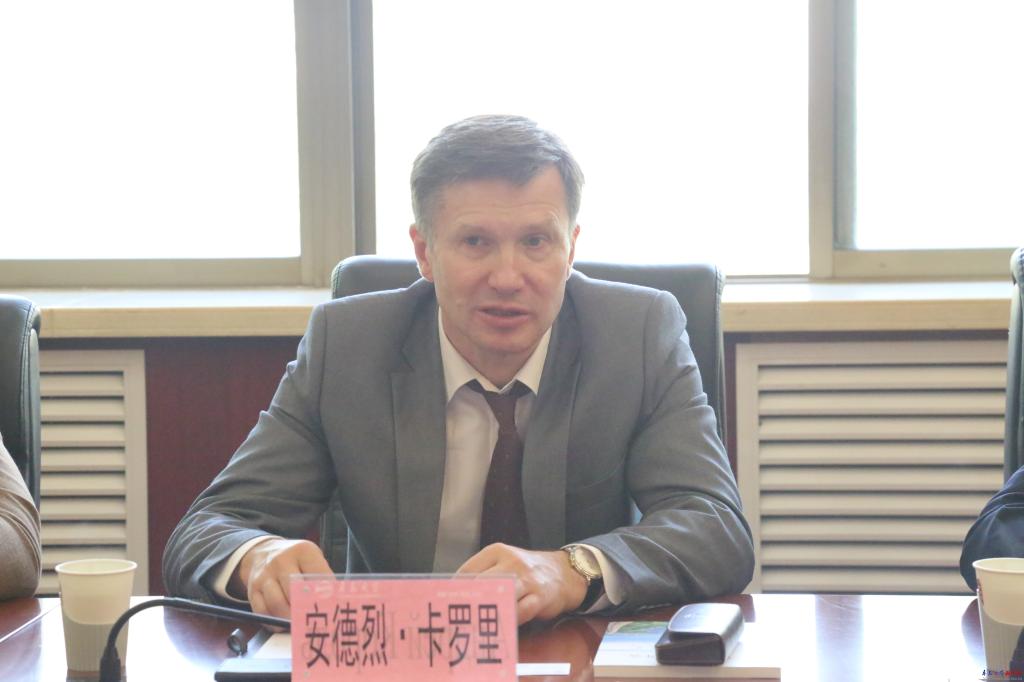 白俄羅斯國立大學副校長雅羅斯拉夫·切爾卡斯基、外事處處長,我校國際交流合作處、發展規劃處、上合經貿學院辦公室、數學與統計學院、物理科學學院相關負責人出席會議。