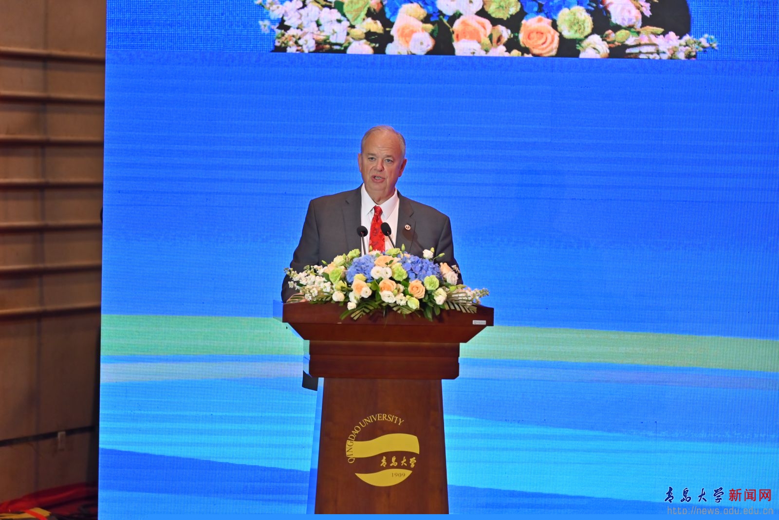 新聞網訊 為深入貫徹2023年11月中美兩國元首在舊金山會晤達成的共識,進一步深化山東與美國教育交流合作,10月24日,中美(山東)高等教育交流與合作論壇在我校成功舉辦。山東省教育國際交流協會副會長孫祖興,山東省教育廳國際交流與合作處處長王夫海,美國德雷克大學校長馬蒂·馬丁(Marty Martin),美國威斯康星大學歐克萊爾校區校長詹姆斯·施密特(James Schmidt ),青島大學校長魏志強出席論壇,美國前駐華大使、世界糧食獎基金會主席特里·布蘭斯塔德(Terry Branstad),美國艾奧瓦州州議員、州醫療協會會長史蒂文·丘吉爾(Steven Chuchill)線上出席,青島大學黨委常委、副校長何燕主持活動。