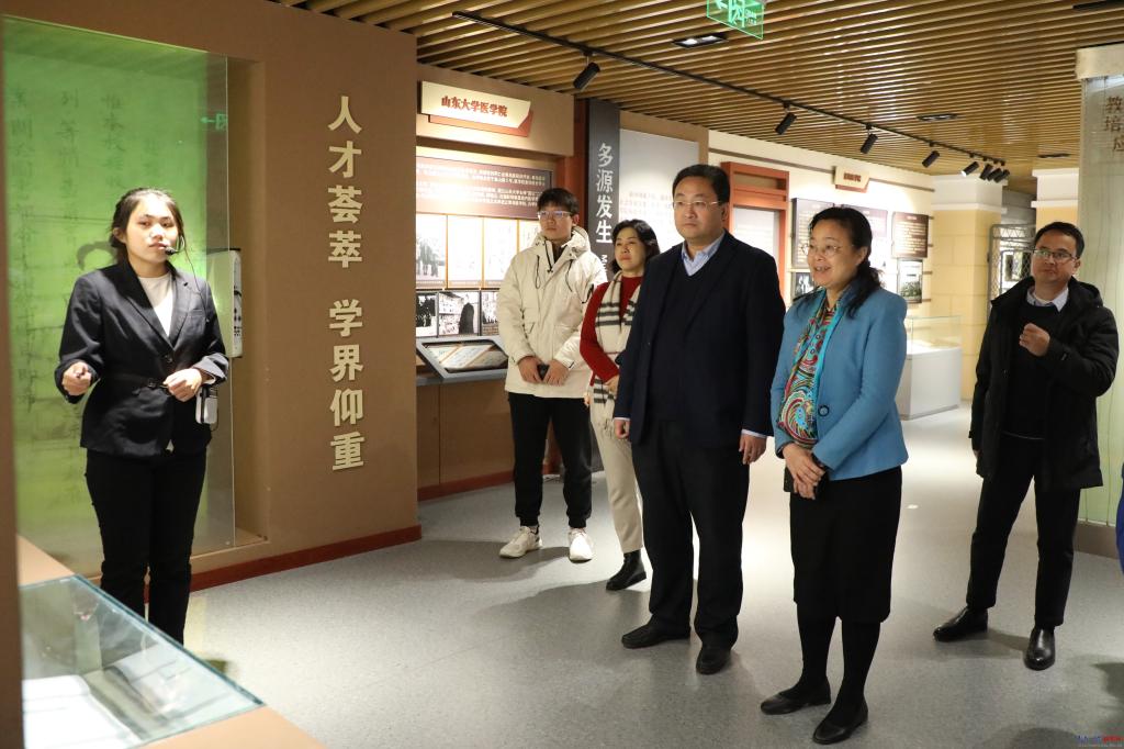 座談會前,韋仕珍一行對產業技術研究院、創新創業學院、國家大學生文化素質教育基地·浮山書院、校史館進行了實地調研。