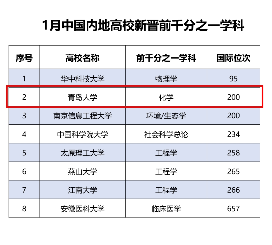 除化學(0.97‰)外其他上榜學科中,材料科學(0.91‰)、工程學(0.94‰)位居全球排名前1‰;臨床醫學(1.15‰)、藥理學與毒理學(1.52‰)位居全球前2‰;計算機科學(2.23‰)、社會科學(2.83‰)、生物及生物化學(2.86‰)位居全球前3‰;環境學及生態學(3.90‰)、神經科學與行為科學(3.96‰)、農業科學(4.11‰)、分子生物學與遺傳學(4.51‰)位居全球前5‰;免疫學(8.41‰)、心理學與精神病學(9.32‰)位居全球前1%。與2024年11月榜單相比,所有學科排名均有提升。