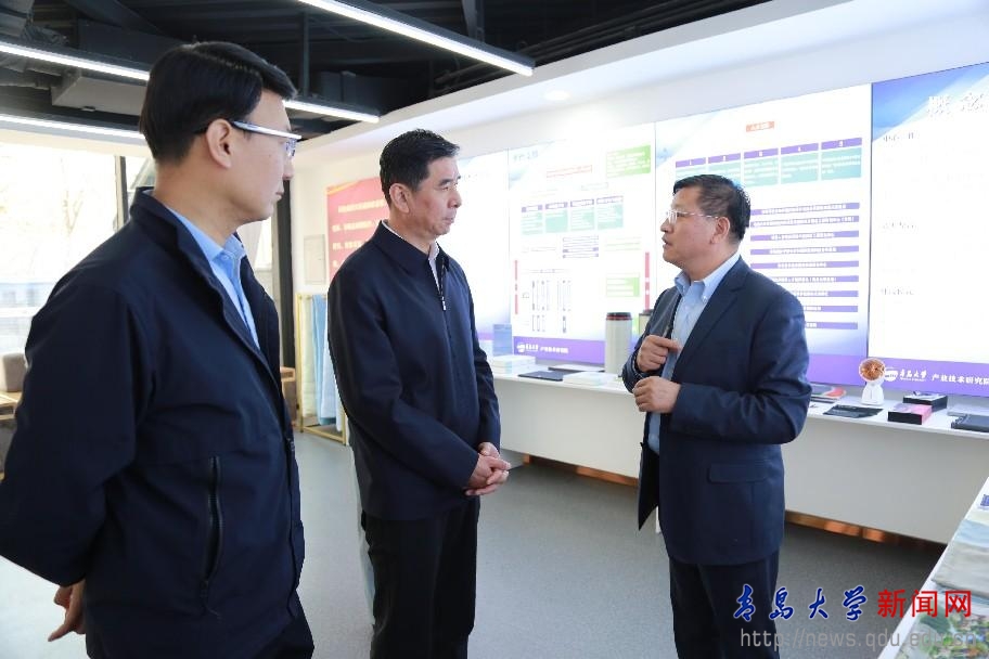 在產業技術研究院,劉斯杰認真聽取魏志強關于一流學科建設進展的匯報,詳細了解青島大學在學科集群建設與醫工交叉融合方面的創新實踐,劉斯杰對學校在科研成果轉化、服務經濟社會發展方面取得的成績給予肯定,他鼓勵學校要發揮優勢學科的創新勢能,推動學科鏈與產業鏈交互融合,助力重大科學創新和關鍵技術突破轉化為新質生產力,進一步增強學校創新資源對社會經濟發展的驅動力。