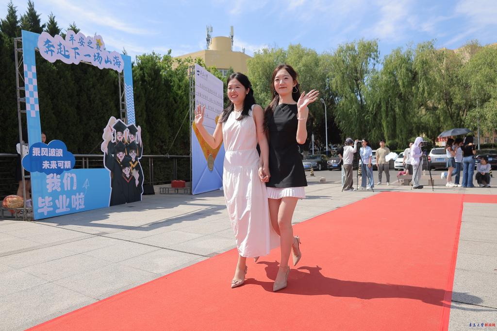 歌會開始前,學校為畢業生開設了紅毯秀環節,近百名畢業生精心準備,與師友踏上紅毯,留下畢業前最美好的定格瞬間。