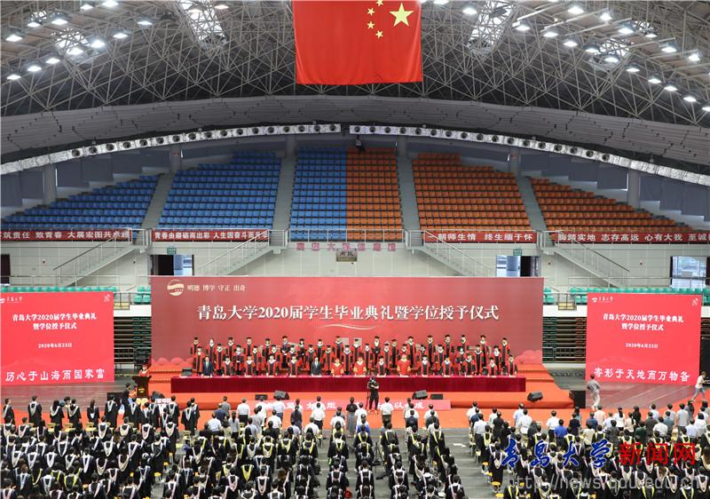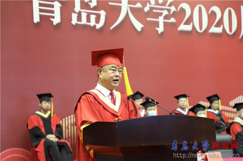親愛的同學們,突如其來的疫情,讓2020屆畢業生注定與眾不同,讓今天有了別樣的畢業典禮。此時此刻,我們線下云端共同見證8702名本科生、2812名博士碩士研究生順利完成學業,開啟新的征程。在此,我代表青島大學,向每一位畢業生,致以熱烈的祝賀!向為同學們成長、成才辛勤付出的老師、親友和社會各界朋友,表示衷心的感謝!今年,學校為每位畢業生精心準備了畢業紀念品和刻有每位同學名字的紀念印章,學校為未能返校的同學保留機會。云端的同學們,你們可選擇在今后任何一年,參加學位授予儀式,補拍畢業照。