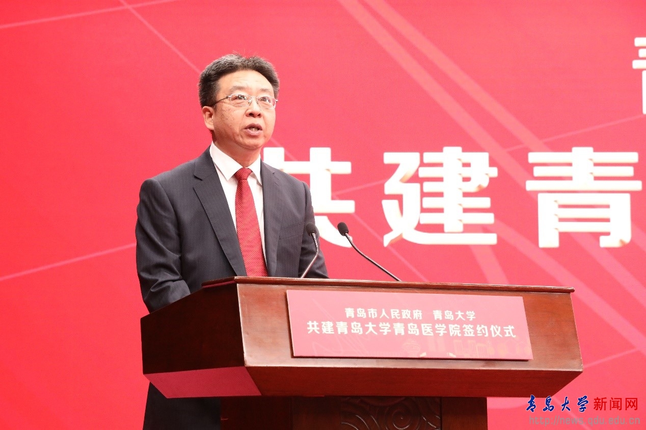 夏東偉在講話時說,作為以青島城市名字命名的綜合大學,青島大學始終堅持立足青島、融入青島、服務青島,把服務青島作為學校的重要使命擔當。“十二五”“十三五”省市共建青島大學以來,在青島市委、市政府的支持下,青島大學各項事業呈現加速度發展的良好態勢。青島市人民政府與青島大學簽署“共建青島大學青島醫學院”戰略合作協議,并將青島7所醫院作為市校共建附屬醫院,這是貫徹落實習近平總書記的要求,增進人民健康福祉的重要舉措,是落實市委市政府“創建國家區域醫療中心,建設長江以北地區一流醫療中心城市”的具體行動,在青島醫學教育和醫療發展史上具有里程碑意義。