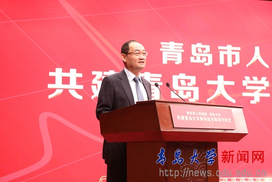 儀式上,王清憲與胡金焱一起為青島大學青島醫學院揭牌。