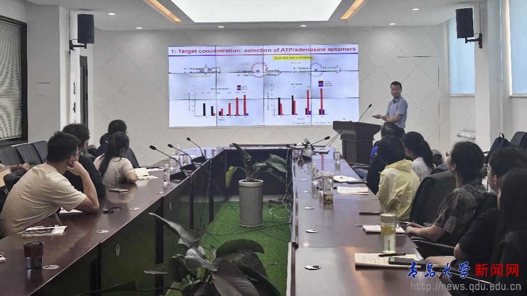 新聞網訊 9月13日上午,加拿大滑鐵盧大學劉玨文教授做客“活力生命”論壇,為我校生命科學學院師生作題為“納米金和核酸適配體的生物傳感和藥物遞送”的學術報告。報告會由青島大學生命科學學院教授、中國科學院“百人計劃”專家、化學生物學和生物傳感研究所所長劉愛驊教授主持。生命科學學院相關領域的教師與研究生50多人聆聽報告。