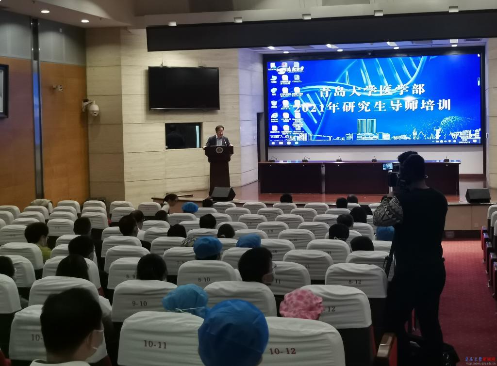 新聞網(wǎng)訊 為進(jìn)一步加強(qiáng)醫(yī)學(xué)部研究生導(dǎo)師隊(duì)伍建設(shè),提升研究生學(xué)位論文質(zhì)量,醫(yī)學(xué)部于5月13日在青島大學(xué)附屬醫(yī)院學(xué)術(shù)報(bào)告廳召開研究生導(dǎo)師培訓(xùn)會(huì)。醫(yī)學(xué)部副部長宋揚(yáng)主持會(huì)議,會(huì)議采用線下與線上直播相結(jié)合的方式,主會(huì)場和各學(xué)院臨床醫(yī)學(xué)院分會(huì)場近千名導(dǎo)師集中參加了培訓(xùn),線上7000余人通過微信平臺(tái)觀看了培訓(xùn)會(huì)。