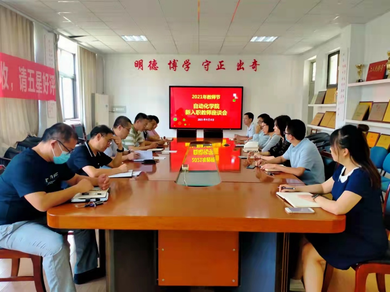 新聞網訊 9月8日下午,自動化學院在行思樓316會議室召開新入職教師座談會。學院黨委書記張新柏主持。2021年度校優秀教師、校服務育人先進個人代表、2021年度新入職教師參加座談會。