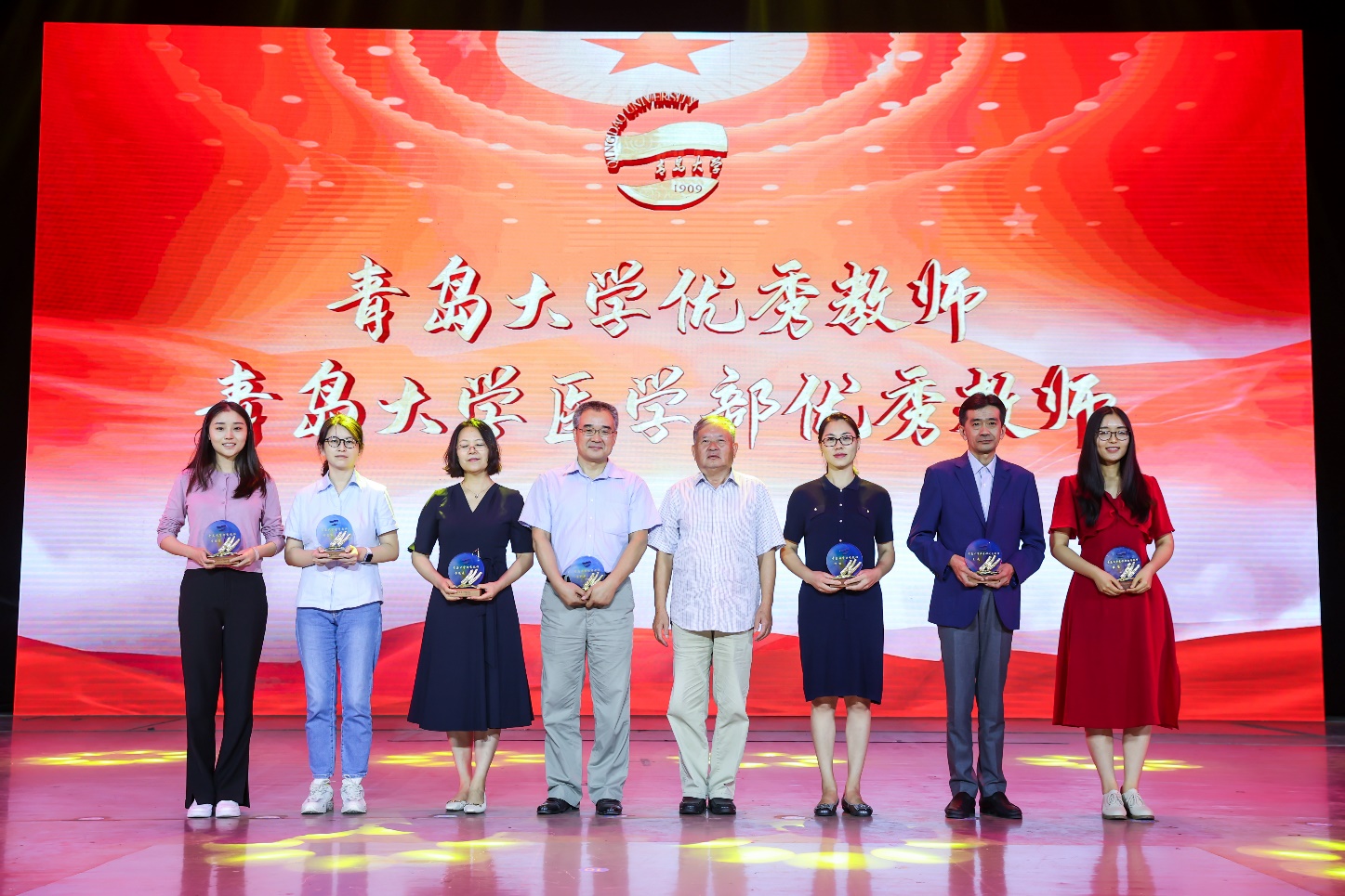會上向獲得“山東省教書育人楷模”及青島市”教學名師“、“最美志愿者”,青島大學“優(yōu)秀教師”“師德標兵”“最美教師”“優(yōu)秀教育工作者”“服務(wù)育人先進個人”“優(yōu)秀青年工作者””優(yōu)秀輔導(dǎo)員“”輔導(dǎo)員年度人物“”第五屆十佳班主任“”優(yōu)秀班主任“”教學能手“”教學管理先進工作者“,醫(yī)學部“優(yōu)秀教師”“最美教師”“優(yōu)秀教師”“服務(wù)育人先進個人”及醫(yī)學部第十二屆中青年教師教學大賽和第九屆中青年教師英語授課大賽一、二等獎獲獎老師進行頒獎。