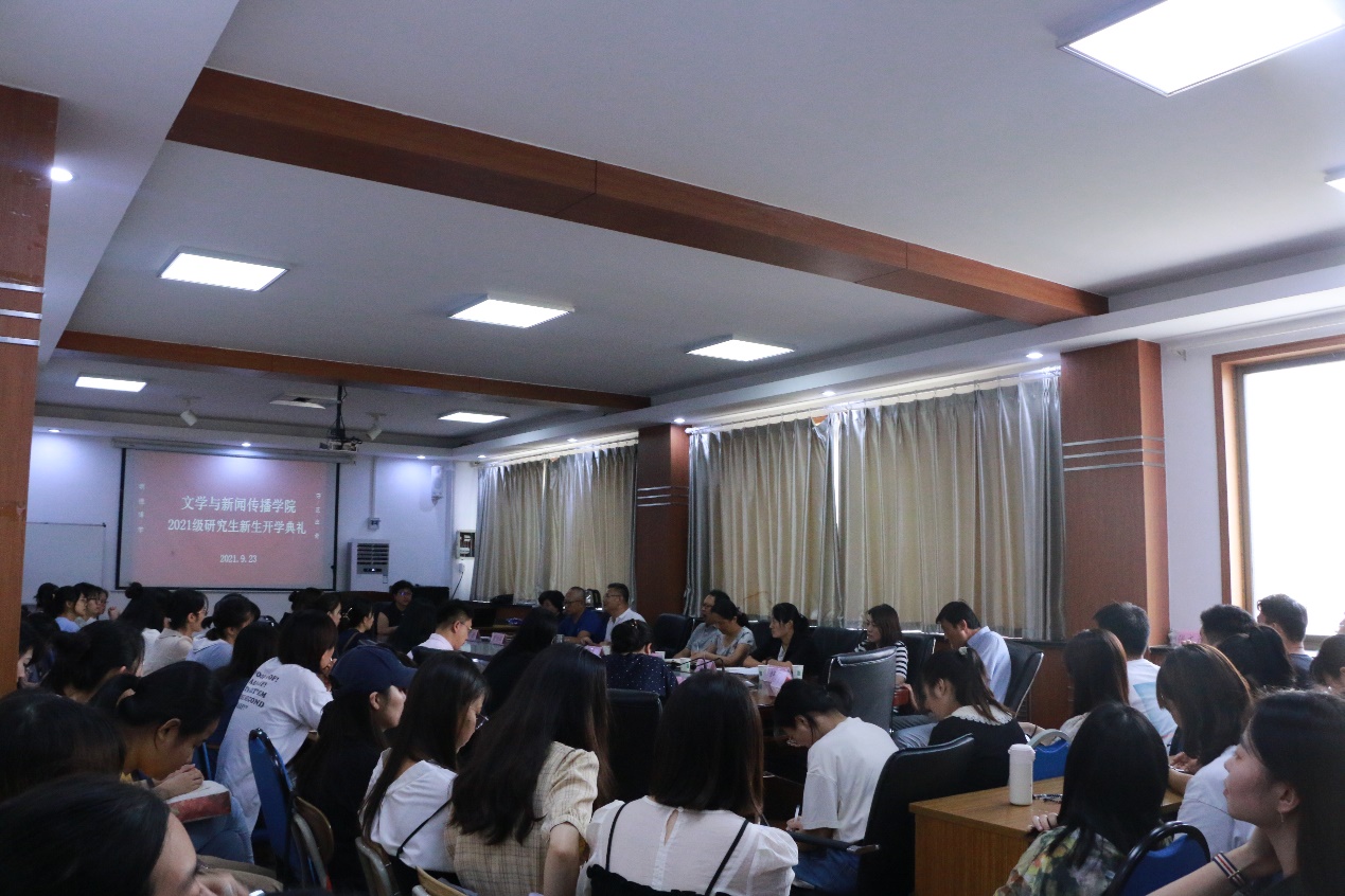 新聞網(wǎng)訊 9月23日下午,文學(xué)與新聞傳播學(xué)院2021級研究生新生開學(xué)典禮在博文樓521會議室舉行。