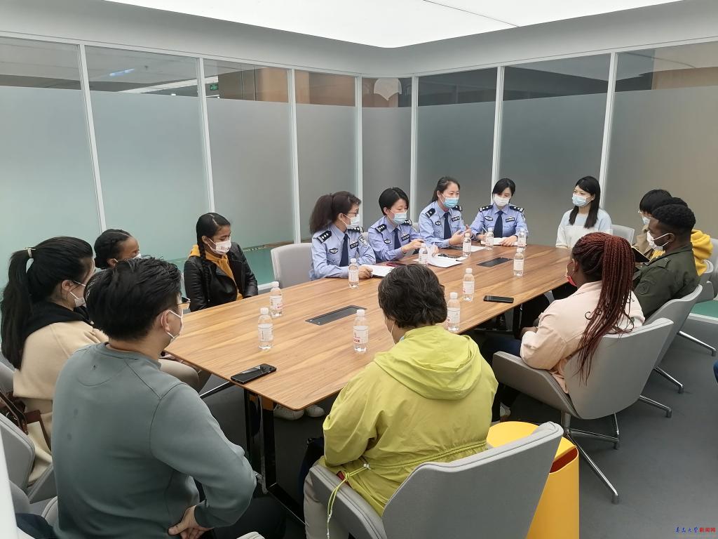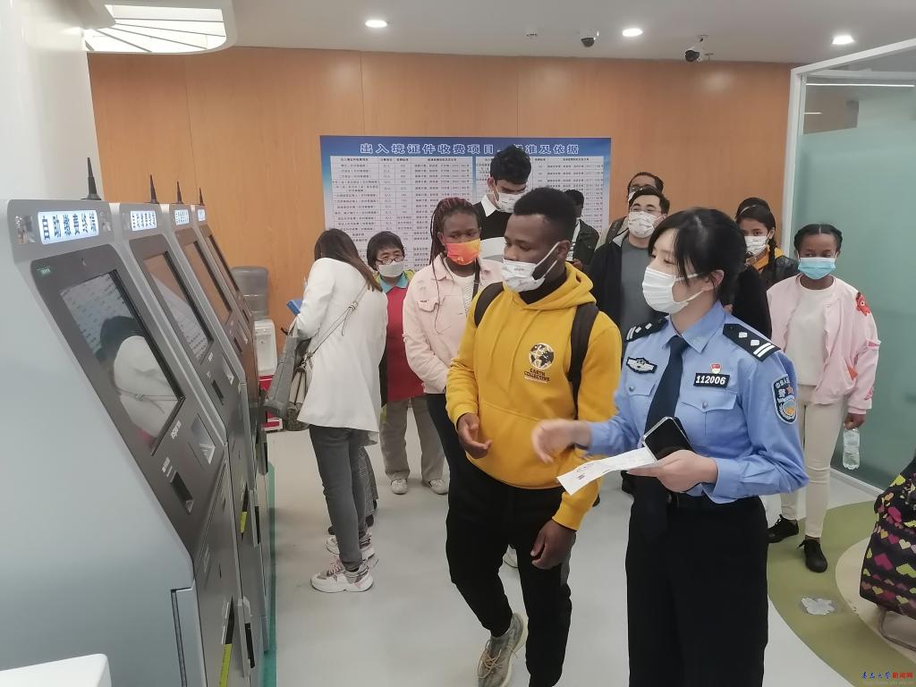 師生們在丁曉靜警官的帶領下,全過程詳細了解了境外人員申請簽證中的自助申辦、號碼申領、窗口辦理及服務繳費的全流程,感受貼心零距離服務。在中國公民業務辦理區,詳細了解了身份證、車管、中國公民護照申領等相關業務的辦理流程,參觀結束后,師生一行來到會議室,與出入境管理局簽證一科及審批科相關領導親切座談,警民就師生所關注的關于境外人員及中國公民出入境業務進行了溝通交流,并進行了答疑活動。出入境管理局簽證一科韓立君科長為3名剛剛獲得新學生居留許可的留學生現場頒發了簽證。
