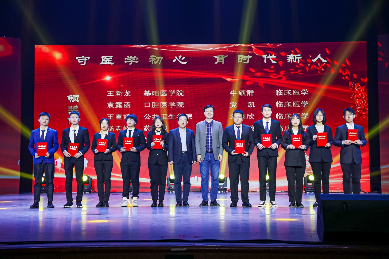 醫學部黨委書記、附屬醫院黨委書記、理事長王新生為典禮儀式致辭。他指出,醫學部以習近平新時代中國特色社會主義思想為指導,深入開展黨史學習教育,堅定社會主義辦學方向,堅持立德樹人根本任務,聚焦一流本科、一流學科目標,深化“一二三四五”協同育人綜合改革,全面提升人才培養質量,各項事業取得了突破性成果。