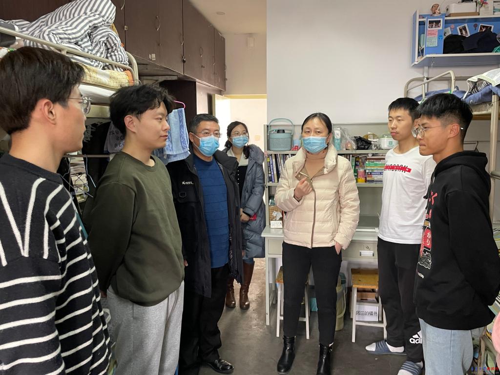 新聞網訊 為應對嚴峻的疫情防控形勢,根據相關要求,學校開啟云端授課實行封閉管理。各學院駐校值班領導分別帶隊深入學生宿舍走訪,及時了解同學們疫情期間的日常生活和網課學習情況,做好思想穩定工作。